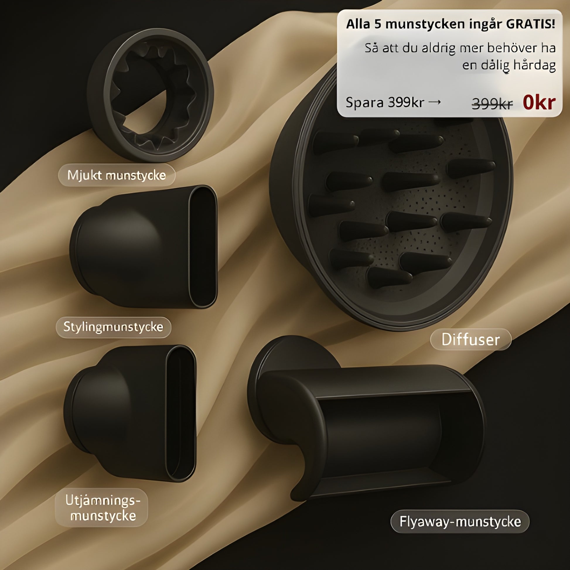 Ja – alla fem professionella munstycken ingår i setet. Du får allt du behöver, utan att betala något extra.